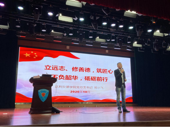 新的开始,新的征程。为了使大一新生更快更好地适应大学生活,帮助他们更好地处理大学生活中所面临的困难和问题,10月28日晚六点,达利女装学院在图书馆报告厅举行2020级新生开学第一课活动。党总支书记郑小飞以及学工办全体老师出席本次活动,活动由柳霆钧老师主持。