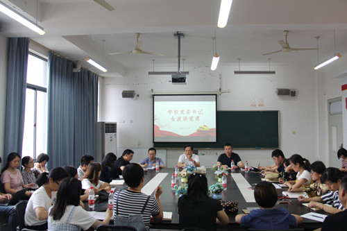 月17日下午,学校党委书记金波来到达利女装学院,为达利全体师生党员讲主题党课。