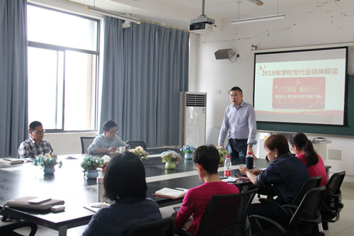 党总支副书记郑小飞深入解读职教20条,从三个方面向全体教师传达了学校党委书记金波在党代会上所作的工作报告,并结合学校正在推进的“高职名校”建设分享了个人学习心得。