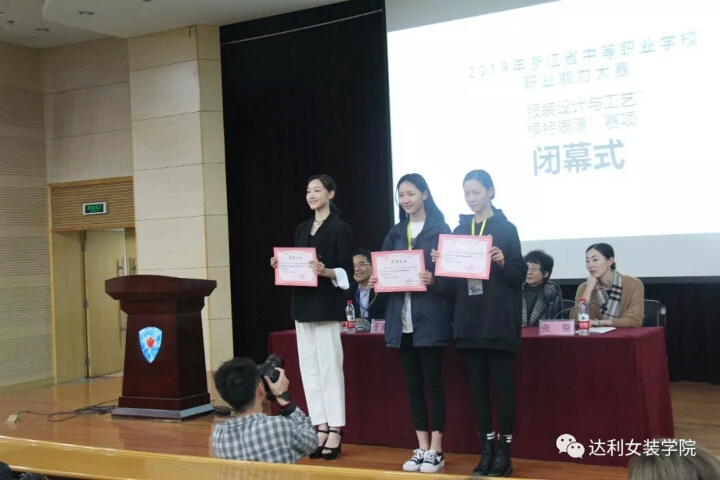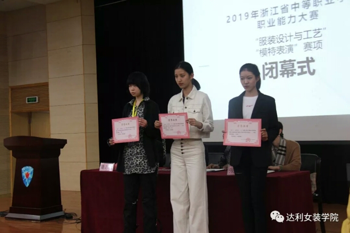 经过激烈角逐,宁波市北仑职业高级中学、杭州市服装职业高级中学、柯桥区职业教育中心的选手荣获服装设计与工艺赛项团体前三名,鲁小宁、高妍、徐凡舒获得模特表演一等奖,吕欣雨、夏伶煜、张盼欣获得“模特展示”分赛项一等奖。