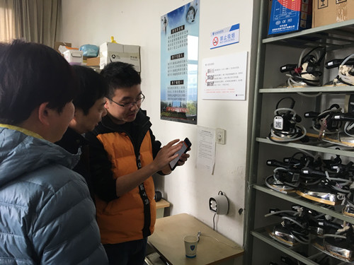 受充电宝借还APP的启发,他们尝试探索熨斗借还APP,委托专业人士设计开发了熨斗借还应用信息系统,与学院的微信公众平台绑定,所有熨斗借还的信息数据实时上传反馈,工作人员可以随时监测。该系统上线投入使用后,学生只要手机扫描二维码,熨斗就可以轻松借走或归还,极大减轻了教科办老师的身心负担。如果有学生未归还,教科办人员通过APP后台能立刻查清借用人的信息,可以第一时间联系了解,确保每一个熨斗来去有踪、安全归还。