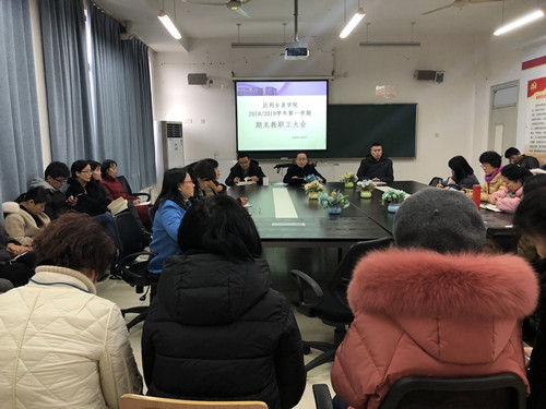 潘志峰对学院期末的主要事项作出安排,传达分享了职业教育方向改革整体趋势。党总支副书记郑小飞回顾并总结了2018年党建、团学、工会等方面的工作重点亮点,及学院十周年的系列庆祝活动,对全体师生们的投入与付出表示衷心感谢。院长徐高峰提炼介绍了学院办学情况,梳理了学院取得的重要荣誉和成果,总结了本学期各部门、各专业取得的成绩与进步,畅谈了学院2019年的期望与规划。徐高峰还真诚分享了2019年的个人flag,激励教职员工珍惜当下,平衡工作与生活,向着既定目标不断精进,收获精彩人生。大会最后向学院全体教职工致以新年的祝福,提醒师生假期注意出行安全,过个平安快乐祥和的春节。