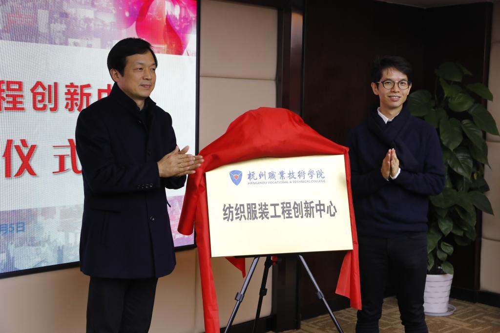 林典誉与金波共同为达利女装学院“纺织服装工程创新中心”揭牌。中心建成后将主要致力于纺织服装技术革新与产品创新的应用研究,实现应用研究与人才培养的协调发展,涵盖纺织产品研发、女装共享版房、女装柔性定制、针织服装技术和产品展示陈列等5个分中心。