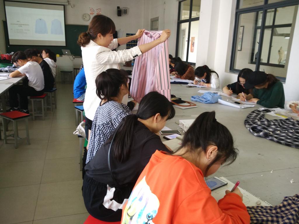 主讲教师为服装设计专业梅笑雪老师,讲课内容是《女装设计实务》课程中的“女上装的绘制”。梅笑雪老师备课充分,教学设计合理。内容回顾、作业点评、新课导入、学生实训、作业评价等等,各个环节环环相扣,富有节奏感。教学过程,注重体现以学生为主体,学做合一。以女衬衫实物为样品,启发学生进行女上装的设计与创作。同时在课程教学中,重视课堂作业和课外作业的布置和检查,充分体现以作业作品为抓手,促进学生动手能力的提高和课堂教学质量提升。
