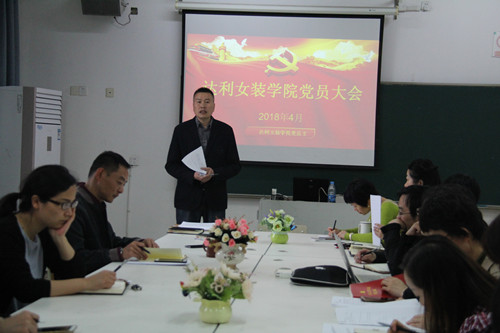4月4日下午,达利女装学院党总支在7501召开教师党员大会。会上,党总支副书记郑小飞对党员引领效能提升“三个一”活动进行了部署。会议按照学校对2017年度党组织和党员“双评”工作的要求,开展了党员定格、支部定级和评优推荐。