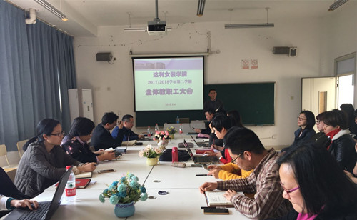 3月4日,达利女装学院在7501召开新学期全体教职工大会。会上,学院领导班子成员分别围绕各自的分管工作,对2018年工作思路和重点工作进行了部署安排。各专业、各部门负责人结合各自部门和岗位工作内容,向大会作本学期主要工作思路汇报。