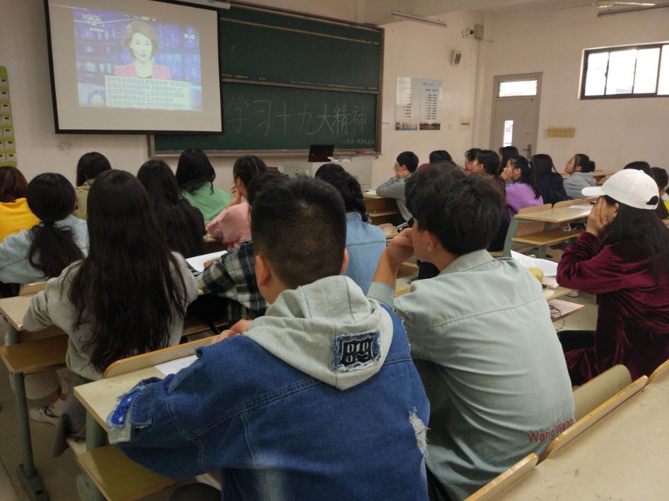 为进一步学习党的十九大精神,提升贫困生学生的爱国情感与政治敏感性,11月8日下午,达利女装学院组织“一米阳光”爱心社成员在6328教室观看了十九大相关的新闻视频。
