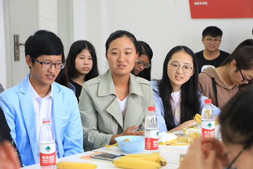 茶话会结束之际,郑小飞为同学们分发了月饼。老师们提前祝福新生们中秋节快乐,希望新生们能很快地适应大学生活,融入到我们达利这个大家庭里。