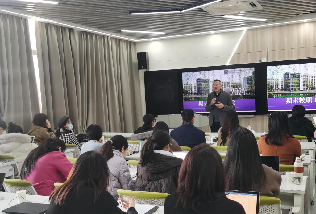 1月17日,达利女装学院在7510智慧教室召开期末教职工大会。质量监控与评估处(审计处)处长戴凤微,达利女装学院院长郑小飞,党总支书记王天红,副院长刘桠楠以及全体教职工参加会议。