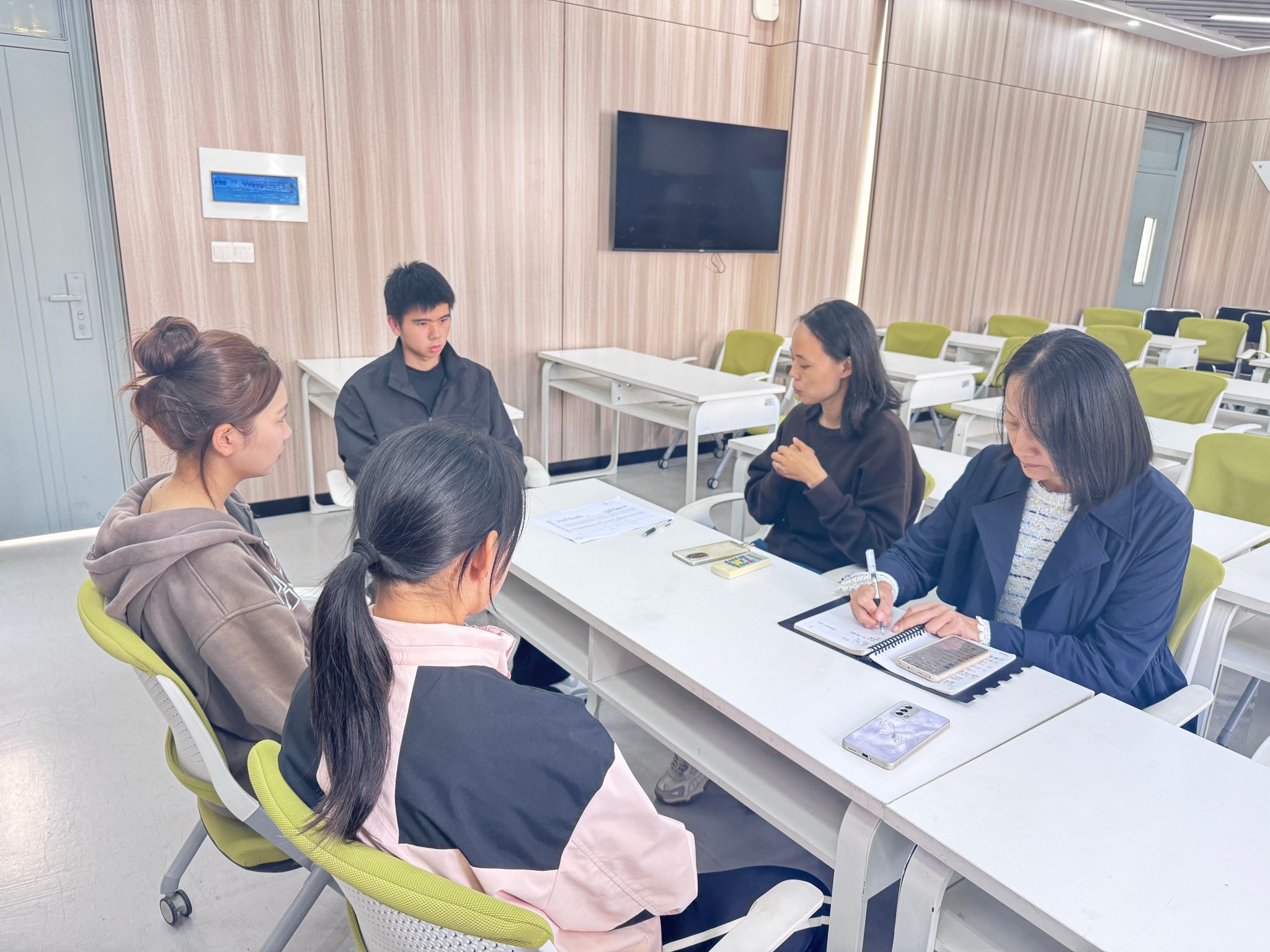 10月下旬,达利女装学院教工第一党支部支委与针织专业50余名新生入党积极分子的谈心谈话会在7510分批次开展。支部书记曹爱娟、组织委员袁菁红按照分工主持谈话,通过一对一问询和分组研讨的形式,围绕思想淬炼、动机检视、专业践行三大主题开展了深度交流。