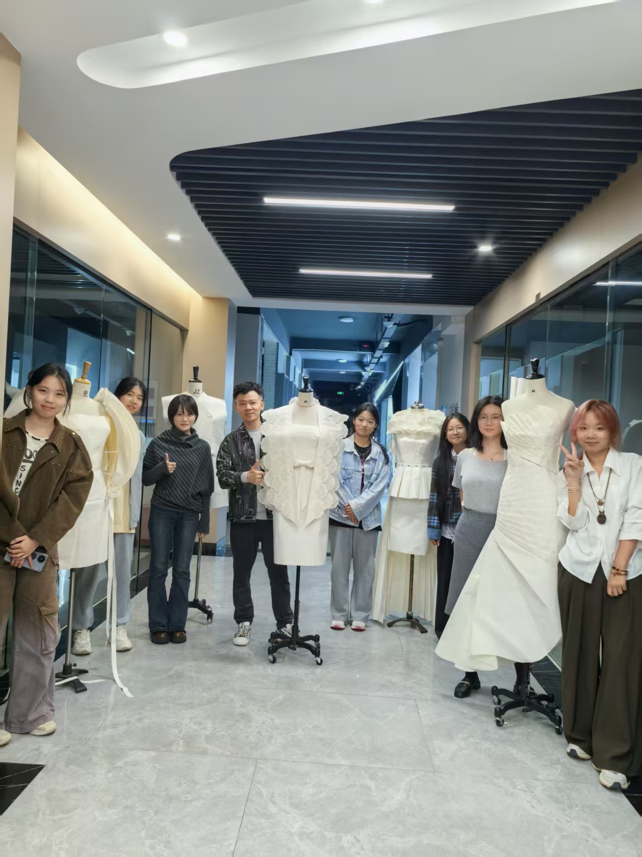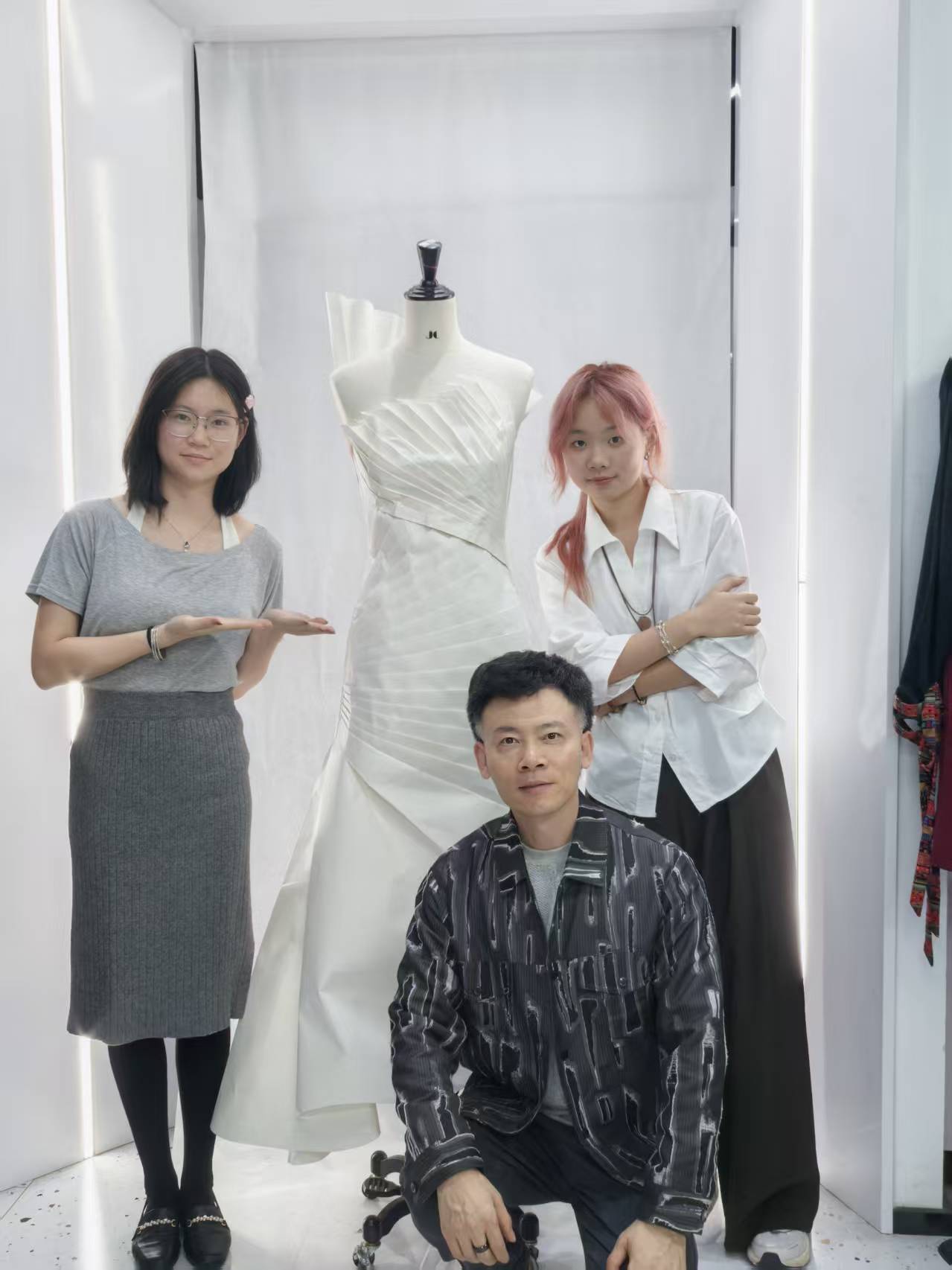 本次项目时间紧、任务重,是对团队专业能力与协作精神的极限考验。在邢旭佳的精心指导下,团队将课堂理论与项目实践深度融合,完美诠释了“项目化教学”这一高效育人模式。从设计构思、材料处理到立体裁剪与最终成型,学生们全程参与,将二维的宣纸转化为可穿戴的艺术品。这一过程不仅极大地锻炼了学生们的动手能力、创新思维和解决实际问题的综合技能,更让学生们从邢教授严谨的治学态度和一丝不苟的示范中,深刻领悟到了精益求精、追求卓越的工匠精神。