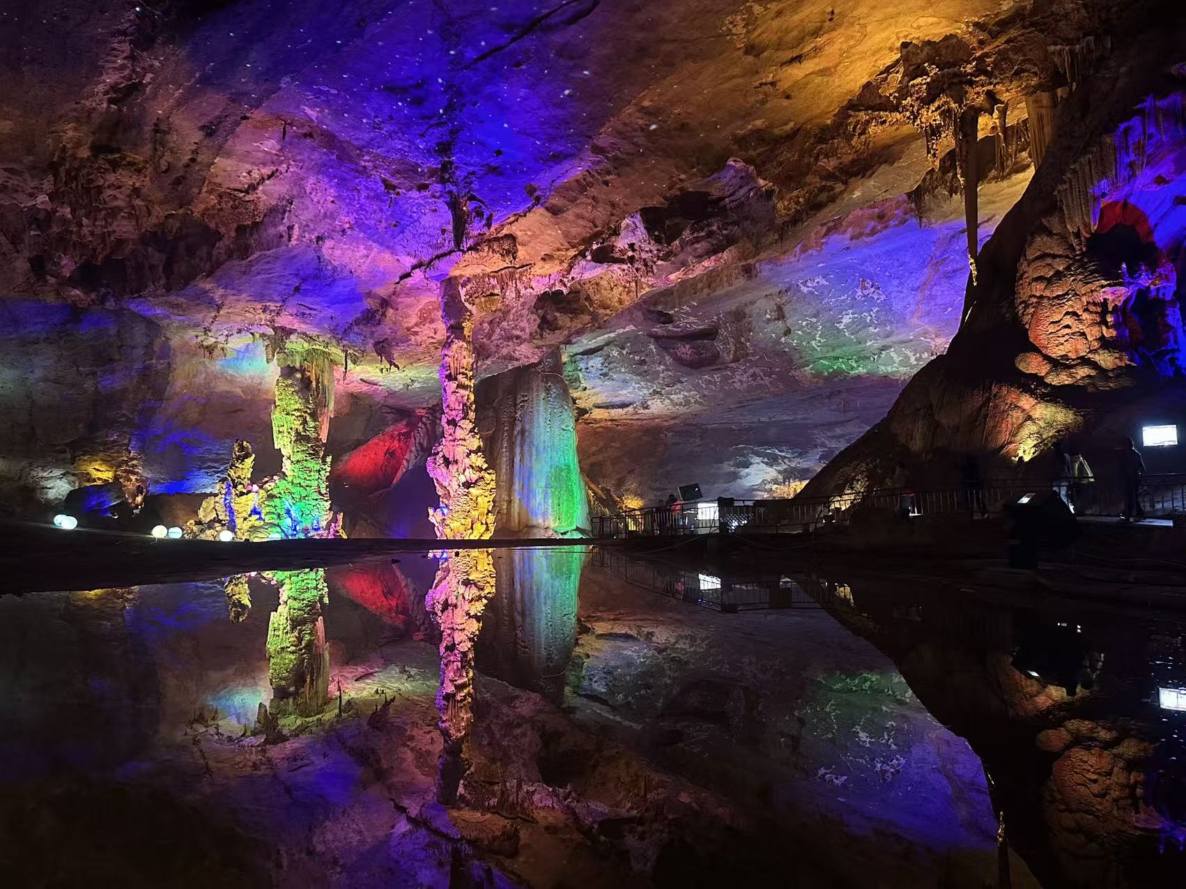 富春桃源风景区,是杭州市富阳区首个国家AAAA级旅游景区,以"山水林洞湖"立体景观为特色,分为两大核心板块:以岩溶奇观为主题的富春桃源风景区,以及融合湖岛风情的棕榈岛度假区。其中九霄碧云洞面积2.8万平方米,被誉为“亚太第一大洞厅”,是一处融山、水、林、洞于一体的司华东地区最具特色的景点。洞内钟乳石林立,光影斑驳,宛若置身仙境,穿行于五色光影交织的长廊,形态各异的钟乳石渐次显现,大自然的鬼斧神工让大家频频驻足,快门声与惊叹声在穹顶下交响。