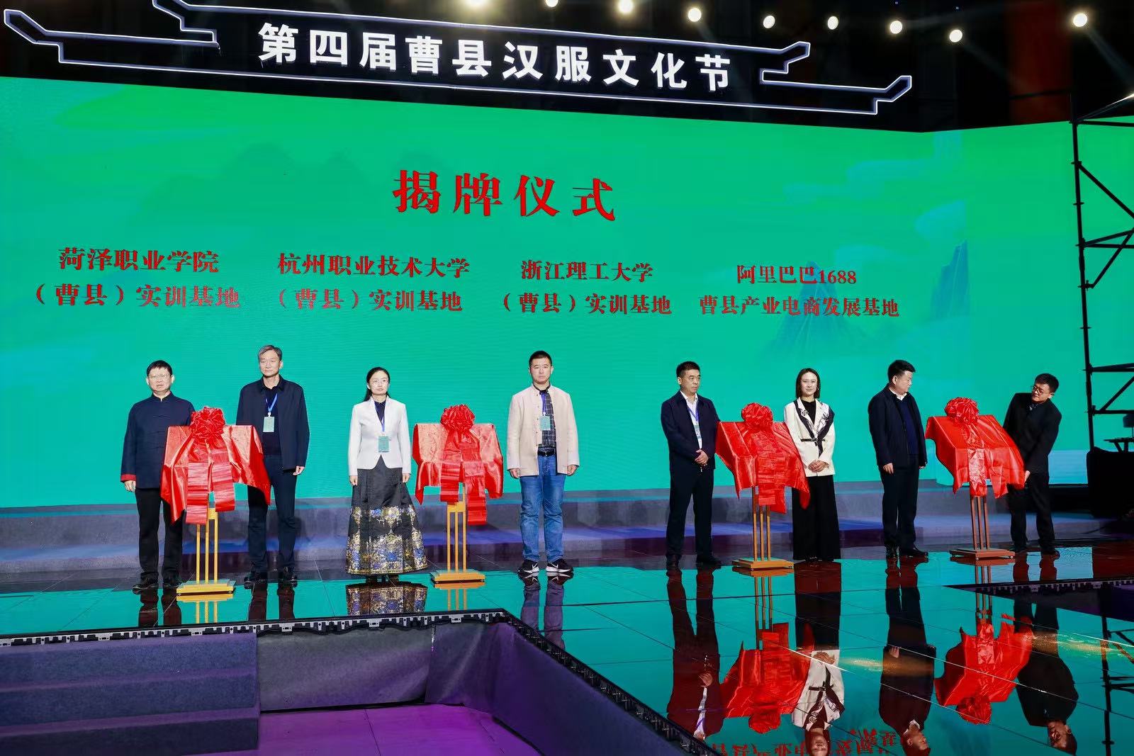 11月22日,第四届曹县汉服文化节在e裳小镇·曹县数字经济产业园盛大开幕,开幕式上杭州职业技术大学曹县实训基地正式揭牌成立,标志着我校在深化产教融合、服务特色产业发展方面迈出扎实一步。