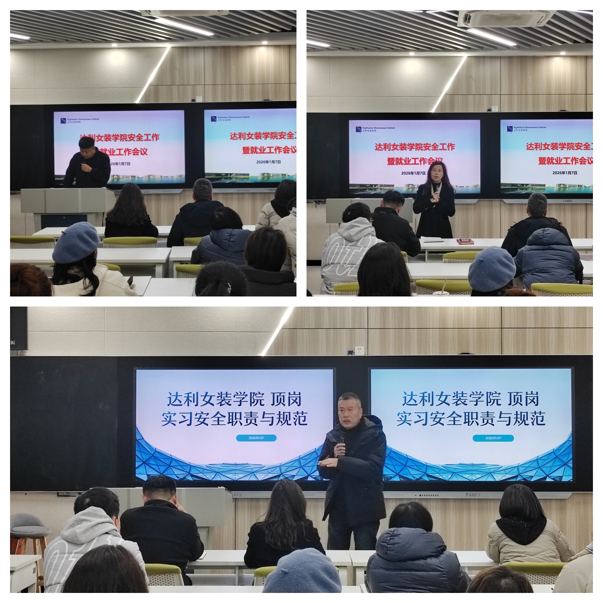 1月7日,达利女装学院在7510会议室召开安全会议暨就业工作会议,分院领导班子,全体教职员工参加此次会议。