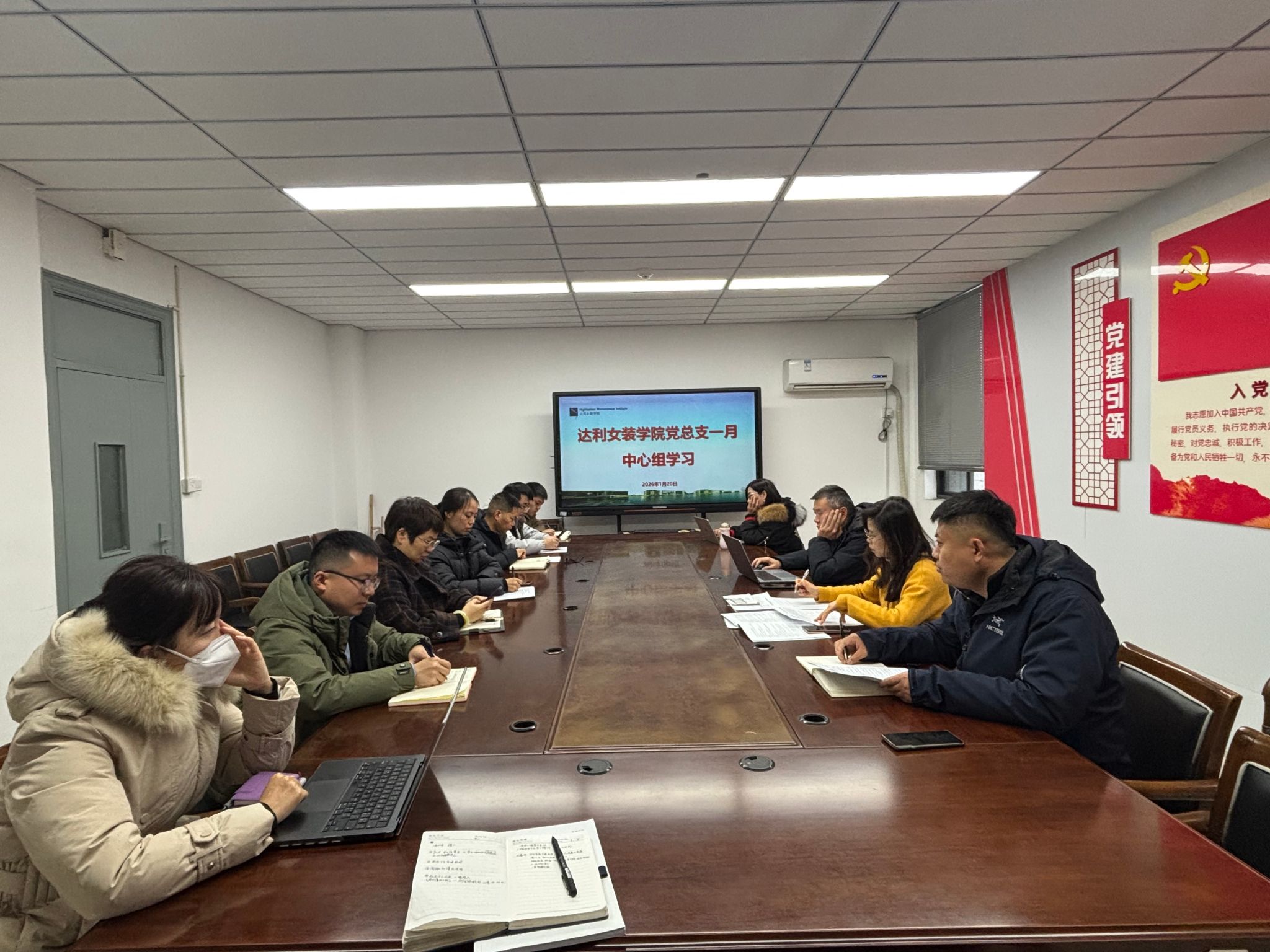 1月20日,达利女装学院党总支理论学习中心组学习会议在7411召开,专题学习研讨党的二十届四中全会精神。达利女装学院党政班子成员、支部书记、三办主任等参加会议。会议由党总支书记王天红主持。