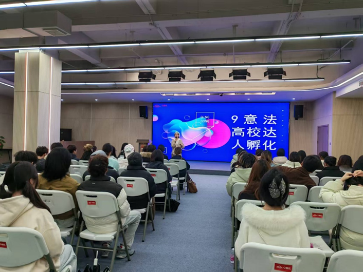 说明会上,9意法女装中心新媒体负责人原子老师首先介绍了项目的整体背景与发展愿景。她表示,9意法作为杭州知名的全品类女装批发市场,拥有近千家源头厂家,具备完善的供应链和丰富的商户资源,是学生开展新媒体实践的理想平台。她鼓励同学们珍惜此次机会,借助企业资源打造个人IP,积累实战经验,实现内容变现与职业发展的双重突破。