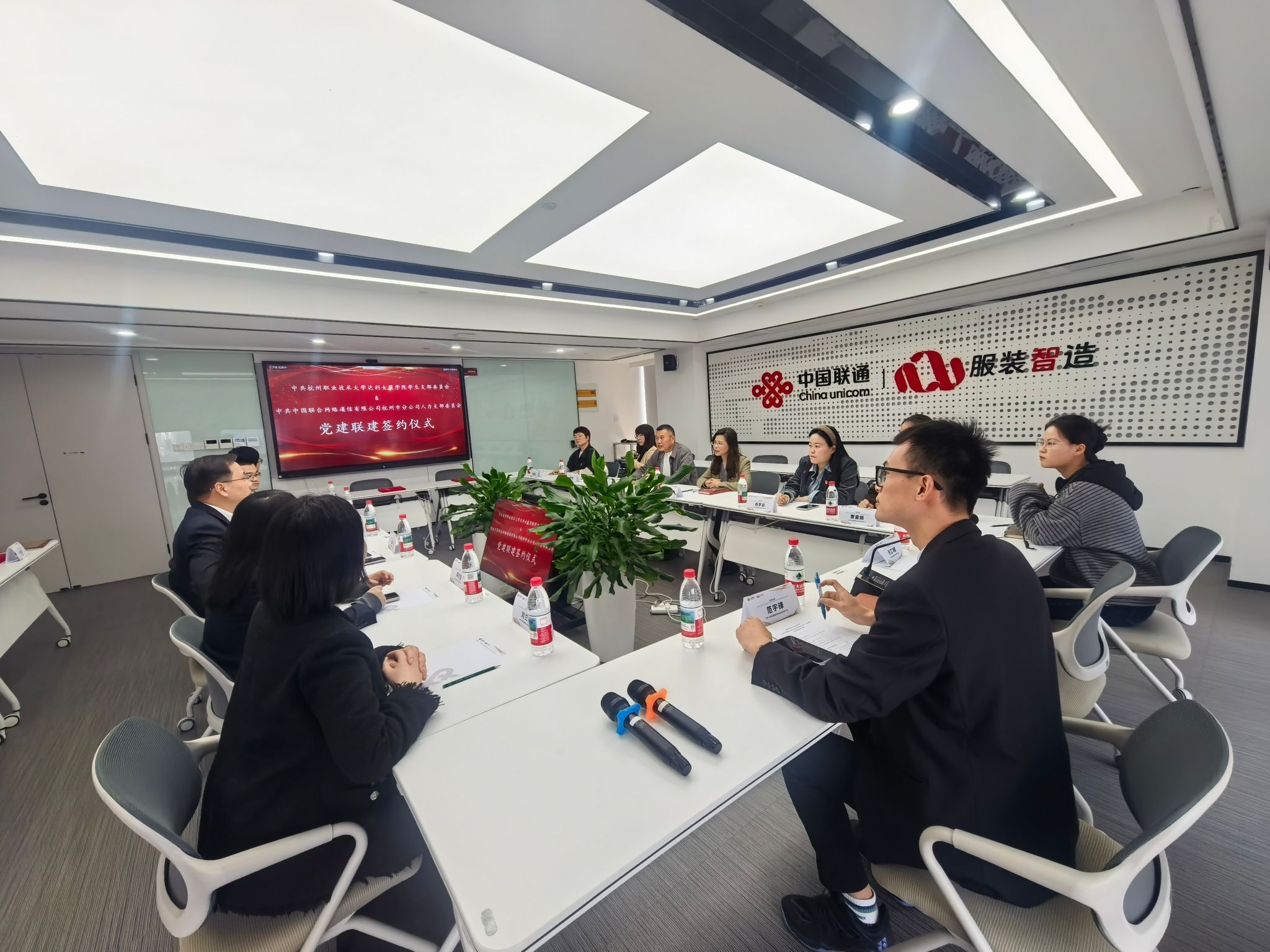 随后,中共杭州职业技术大学达利女装学院教工第一党支部委员会与中共中国联合网络通信有限公司杭州市分公司钱塘支部委员会、中共杭州职业技术大学达利女装学院学生党支部委员会与中共中国联合网络通信有限公司杭州市分公司人力支部委员会分别签署了党建联建合作协议。根据协议,双方将在联学共建、资源共享、人才共育、就业共推等方面开展全方位合作,推动党组织在组织建设、人才培养、社会服务等领域深度协同。签约仪式后,双方共同为“AI数智时尚共育基地”授牌。以此为契机,双方计划在中国联通服装制造军团内共建思政育人平台,将5G、视觉AI、区块链等新技术与服装产业协同设计、智能制造等场景深度融合,面向师生开展沉浸式行业认知实训等活动。